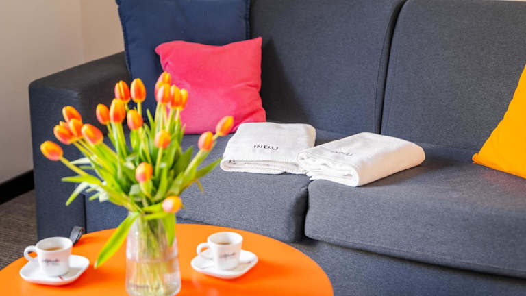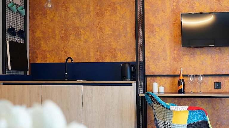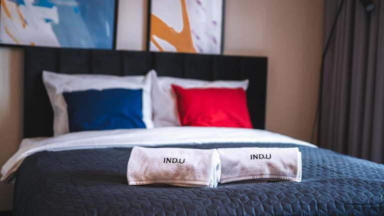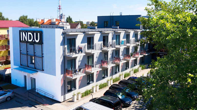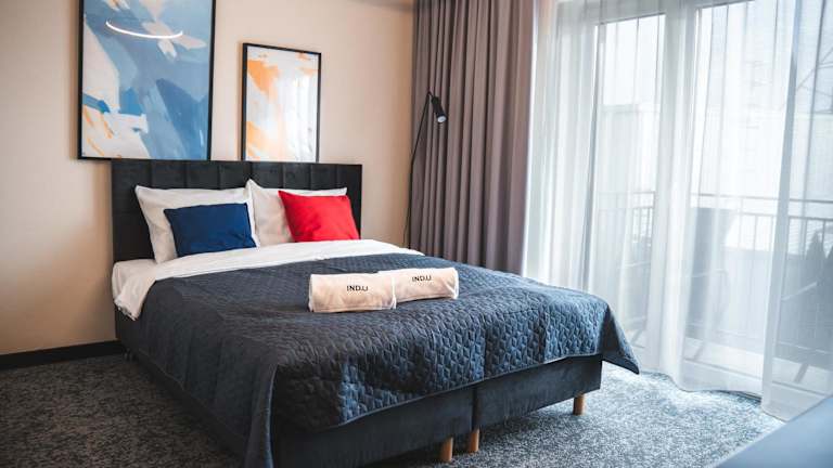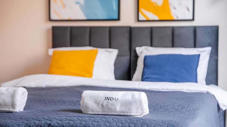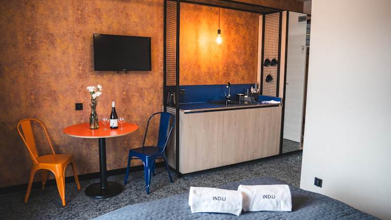 IND.U Apartamenty bietet Gästen kostenlose WLAN-Nutzung sowie Zugang zu einem Garten, einer Terrasse und einer Bar. Ein Privatparkplatz steht vor Ort zur Verfügung.