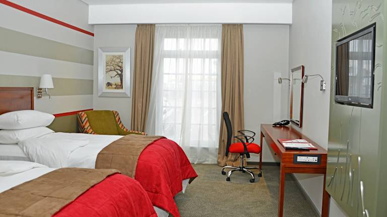 Die Zimmer in der Indaba Lodge Gaborone sind mit einem Schreibtisch, einem Flachbild-TV, Bettwäsche und Handtüchern ausgestattet. Jedes Zimmer verfügt über ein eigenes Badezimmer.