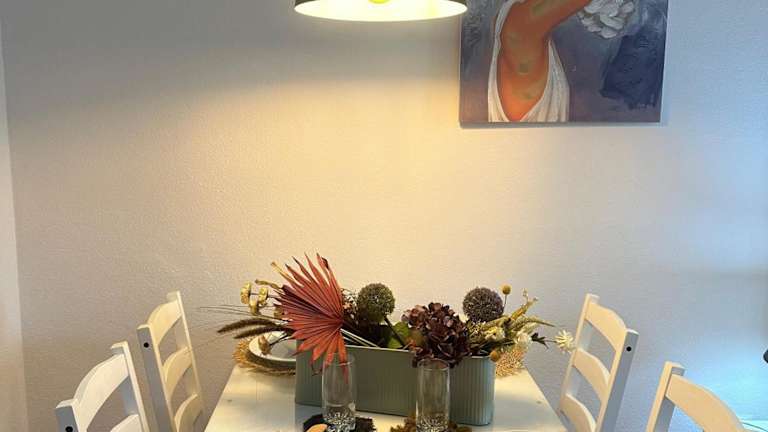Die Ferienwohnung ist ausgestattet mit 1 Schlafzimmer, 1 Badezimmer, Bettwäsche, Handtüchern, einem Flachbild-TV, einem Essbereich, einer voll ausgestatteten Küche und einer Terrasse mit Blick auf den Garten.