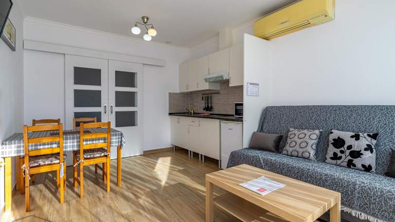 Das President 1 INFTOUR bietet klimatisierte Apartments mit einem Schlafzimmer, die ideal für einen komfortablen Aufenthalt sind. Die Apartments sind mit einem Wohnzimmer, einem Essbereich und einer voll ausgestatteten Küche mit Mikrowelle ausgestattet. Handtücher und Bettwäsche werden gestellt, um Ihren Aufenthalt so angenehm wie möglich zu gestalten.