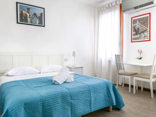 Das Inlaguna Hotel befindet sich im charmanten Viertel Dorsoduro in Venedig. Es ist nur 15 Gehminuten vom Bahnhof Venezia Santa Lucia und 10 Minuten zu Fuß vom Busbahnhof Piazzale Roma entfernt. Diese günstige Lage ermöglicht es Ihnen, bequem mit dem Zug oder dem Bus anzureisen und die Stadt zu erkunden. Die berühmte Piazza San Marco ist nur 2 km entfernt und kann leicht mit dem Vaporetto erreicht werden. Der Flughafen Venedig-Tessera liegt etwa 15 km vom Hotel entfernt.