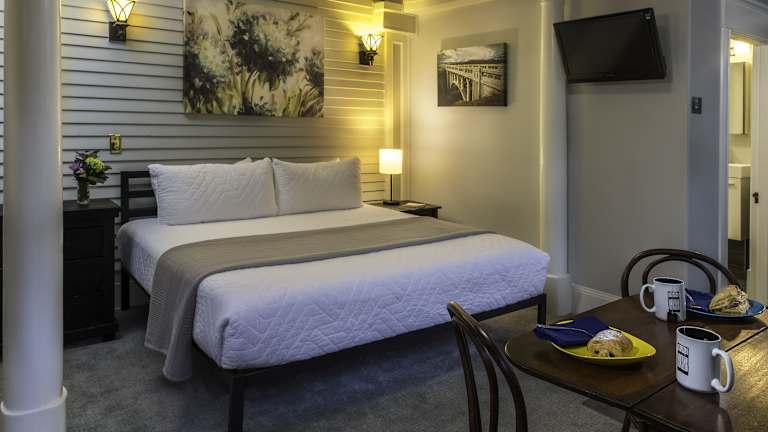 Die Zimmer im Inn at the Gorge sind komfortabel und gemütlich eingerichtet. Jedes Zimmer verfügt über ein eigenes Badezimmer mit Dusche, Klimaanlage, Flachbild-TV und Kühlschrank. Einige Zimmer haben auch eine kleine Küchenzeile mit einem Backofen, einem Kochfeld und einem Toaster, so dass Sie Ihre eigenen Mahlzeiten zubereiten können. Die Einrichtung ist geschmackvoll und bietet eine angenehme Atmosphäre für einen erholsamen Aufenthalt.