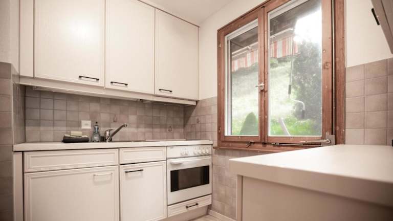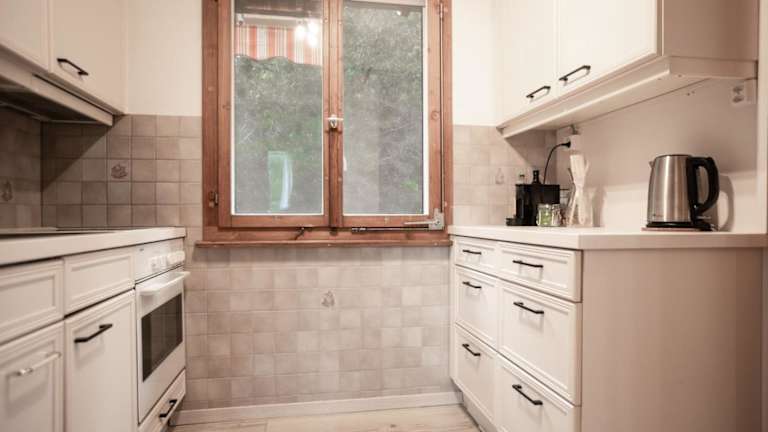 Jedes Appartement verfügt über eine gut ausgestattete Küche mit Kühlschrank, Ofen, Herdplatte, Kaffeemaschine und Wasserkocher, die es den Gästen ermöglicht, eigene Mahlzeiten zuzubereiten.
