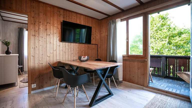 Die Wohneinheiten sind mit einer Terrasse ausgestattet, die einen Blick auf die Berge bietet. Sie beinhalten einen Flachbild-TV, einen Essbereich sowie ein eigenes Badezimmer mit Dusche, Haartrockner und Hausschuhen.
