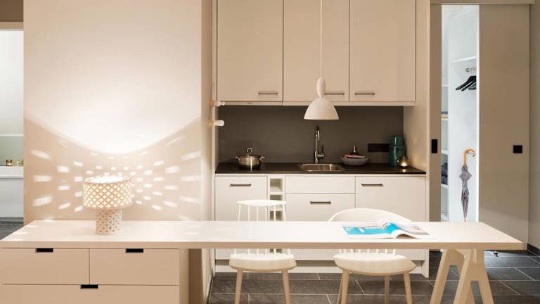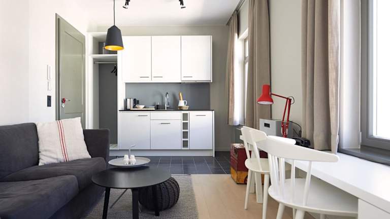 Telefondurchwahl und Klingel mit Gegensprechanlage für jedes Zimmer. WLAN auf dem Zimmer sowie in den öffentlichen Bereichen. Safe, Loewe-Sound-System mit Ipod/Iphone Anschluss und Flachbildschirm-TV auf Wunsch mit DVD. Essbereiche und Pantry-Küchen oder vollausgestattete Küchen mit Geschirrspüler. Alle Zimmer haben Dusche oder Badewanne, meistens beides. Oft auch mit separater Toilette. Fön, Bademantel und hochwertige Naturkosmetik. Taschenfederkernmatratzen, leichte Daunendecken, Fil-à-fil-Bettwäsche und flauschiges Frottee. Viele der Apartments verfügen über Terrasse oder Balkon sowie einen begehbaren Kleiderschrank.