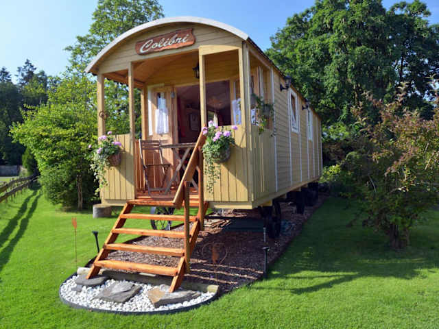 Insolites à Chimay - Roulottes et Manoir - Roulotte Colibri bietet eine einzigartige Unterkunft mit einem Blick auf den Garten, einschließlich Grillmöglichkeiten und einem ruhigen Gartenbereich. Zur Ausstattung gehören auch eine Sauna und ein Whirlpool, die zur Entspannung einladen. Die Unterkunft akzeptiert keine Junggesellen-/Junggesellinnenabschiede oder ähnliche Feiern und richtet sich an Erwachsene.