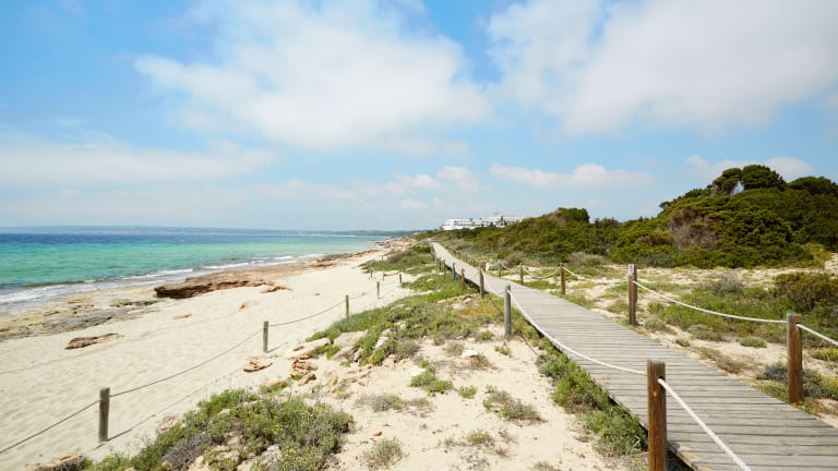 Mitten am herrlichen und ruhigen Migjorn Strand Formenteras gelegen. 9 km entfernt vom Hafen La Savina, Fähre von und nach Ibiza, wo sich der nahestgelegene Flughafen befindet. 6 km von San Francisco Javier entfernt.