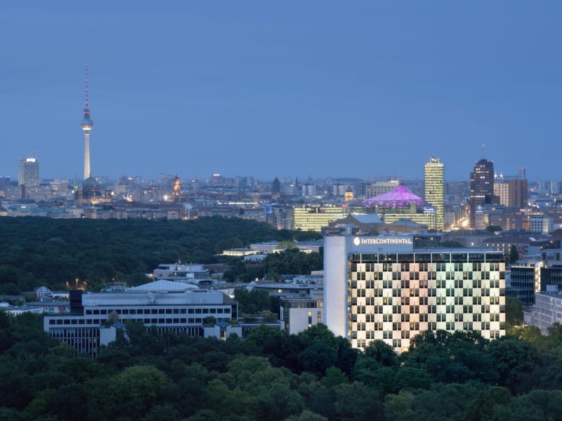 Das InterContinental Berlin liegt mitten im Stadtzentrum, genau im Dreieck zwischen Kurfürstendamm, Regierungsviertel und Potsdamer Platz. Den Zoologischen Garten und Berlins größten Park, den Tiergarten, erreichen Sie in wenigen Minuten zu Fuß. Eingebunden in die Infrastruktur einer Weltstadt ist das Hotel mit Flugzeug, Bahn und Auto hervorragend zu erreichen. Die Stadtautobahn und wichtige Bahnhöfe sind in der Nähe. Zum Hauptbahnhof sind es nur 3 km, der Flughafen Berlin Schöneberg ist ca. 20 km entfernt.