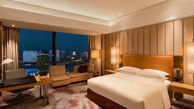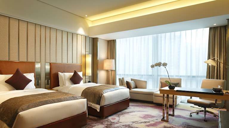 Das InterContinental Changsha bietet 396 komfortable Zimmer, die elegant und einfach gehalten sind und ein entspannendes Ambiente bieten. Die Zimmer sind mit gemusterten Teppichböden und großen raumhohen Fenstern ausgestattet, die viel natürliches Tageslicht hereinlassen. Von den oberen Etagen aus haben Sie einen Panoramablick auf die Stadt und den Fluss Xiang. Jedes Zimmer verfügt über ein geräumiges Badezimmer mit Dusche, Badewanne und kostenlosen Pflegeprodukten.