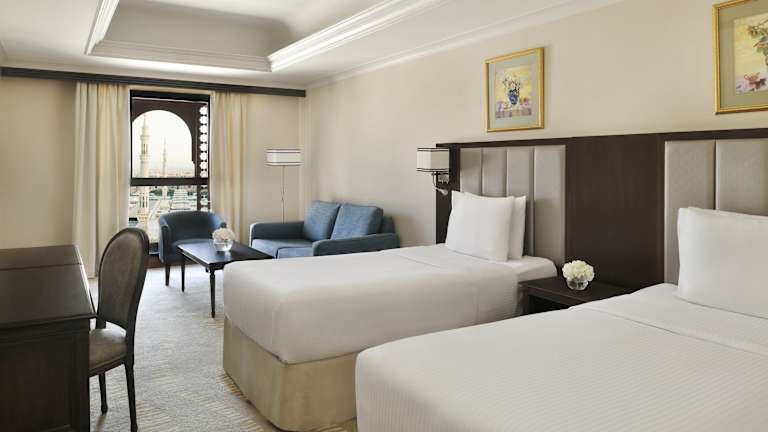 Die Zimmer im Dar Al Iman InterContinental sind klimatisiert und verfügen über Sat-TV, damit die Gäste sich während ihres Aufenthalts unterhalten lassen können. Jedes Zimmer ist mit einer Minibar, einem Safe und einem eigenen Bad ausgestattet, um den Gästen den nötigen Komfort zu bieten. Einige Zimmer bieten auch einen Blick auf die Prophetenmoschee, was ein zusätzliches Highlight ist.