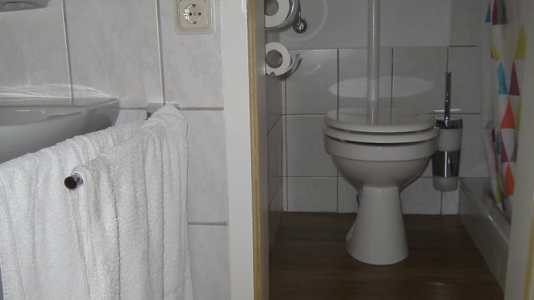 Hotel ist wie Jugendherberge.Zimmer im DG mit steiler Treppe, Geländer auf der steilen… weiterlesen1,0 / 6
