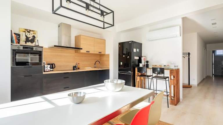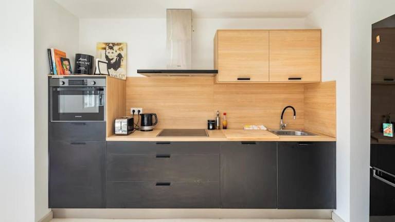Die Ferienwohnung umfasst 3 Schlafzimmer und 2 Badezimmer. Zur Ausstattung gehören Bettwäsche und Handtücher, ein Flachbild-TV, ein Essbereich sowie eine voll ausgestattete Küche. Zusätzlich steht ein Balkon zur Verfügung, der einen Blick auf die Berge bietet.