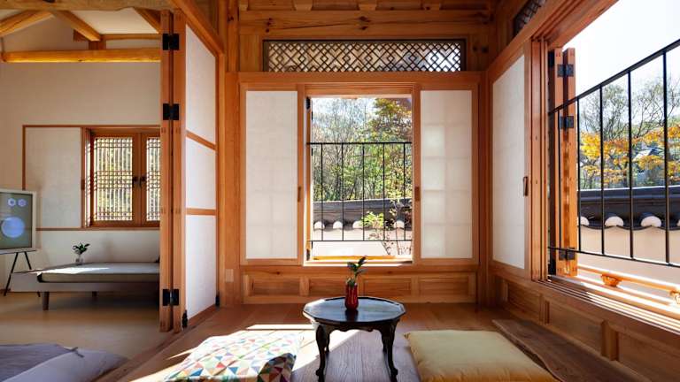 IRIRU Luxury Hanok Stay - Eunpyung Hanok village bietet eine Unterkunft mit Blick auf die Berge und ist mit einer Terrasse sowie einer Veranda ausgestattet. Die Unterkunft verfügt über eine rund um die Uhr besetzte Rezeption und bietet kostenlosen Privatparkplatz sowie WLAN.