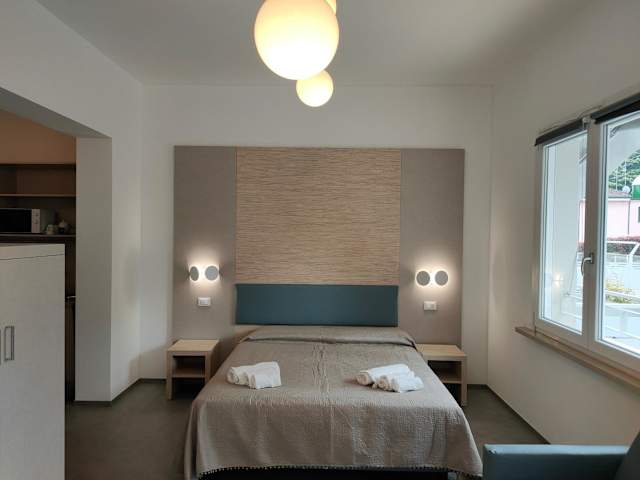 Jede Wohneinheit ist klimatisiert und verfügt über einen Flachbild-TV mit Kabelkanälen. Dazu gehören ein eigenes Badezimmer mit einem Bidet, kostenlosen Pflegeprodukten und einem Haartrockner.