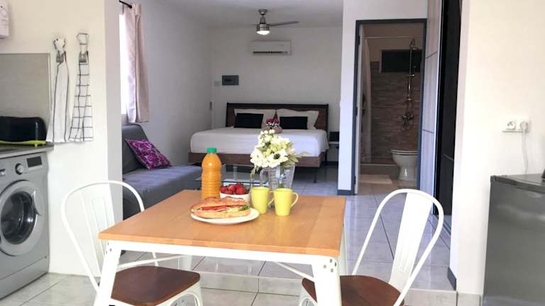 Genießen Sie Ihren Aufenthalt in der Iris Suite, einer Strandunterkunft in Punaauia. Das klimatisierte Apartment bietet Ihnen Komfort und Annehmlichkeiten wie eine voll ausgestattete Küche und kostenfreies WLAN. Die Nähe zu den Stränden, dem Museum von Tahiti und anderen Sehenswürdigkeiten macht diese Unterkunft zu einem idealen Ausgangspunkt für Ihren Urlaub.