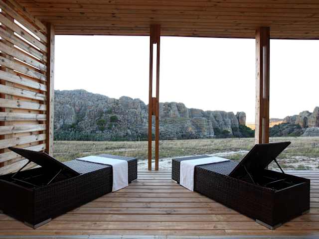 Die Isalo Rock Lodge liegt in den Sandstone Mountains und bietet einen spektakulären Blick auf den Nationalpark Isalo. Die Lodge befindet sich in der Nähe von Ranohira und ist mit einem Allradfahrzeug in etwa 3 Stunden vom Flughafen Toliara aus erreichbar. In der Umgebung gibt es viele Möglichkeiten für Aktivitäten wie Radfahren und Wandern.