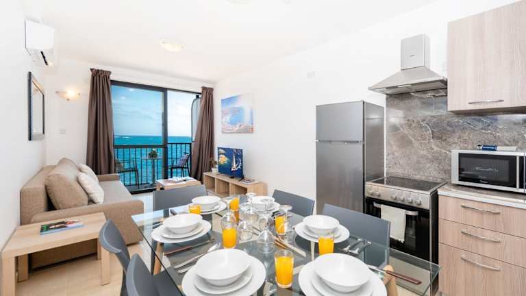 Die Unterkunft liegt direkt am Strand, etwa 800 m vom Buggiba Perched Beach entfernt. In der Nähe befinden sich mehrere interessante Orte wie der Strand Tax-Xama-Bucht, der Strand Qawra Point und das Malta National Aquarium. Der nächste Flughafen, der Flughafen Malta, ist 17 km entfernt.