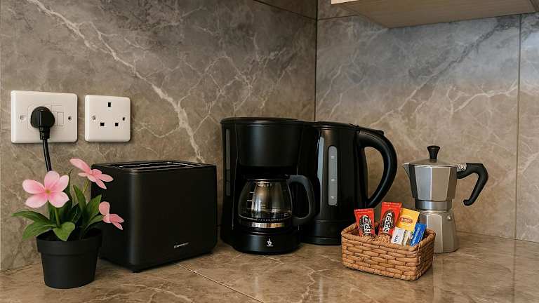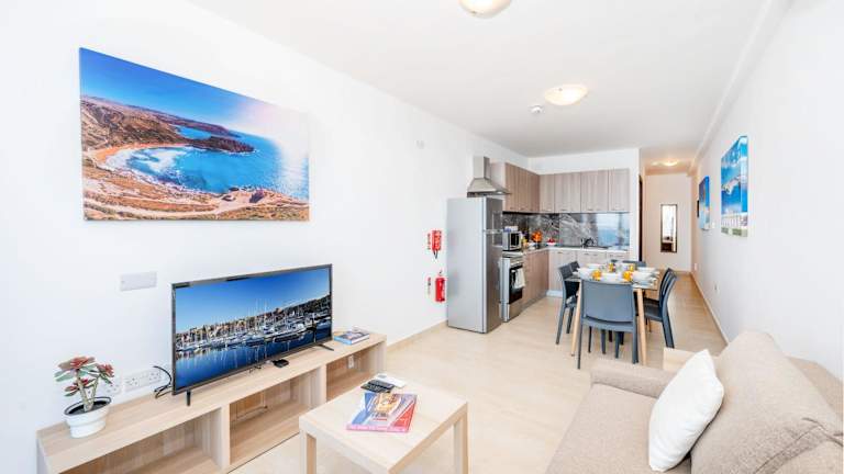 Die Ferienwohnung ist klimatisiert und umfasst zwei Schlafzimmer, ein Wohnzimmer und eine voll ausgestattete Küche mit Kühlschrank und Kaffeemaschine. Das Badezimmer ist mit einer Dusche und kostenlosen Pflegeprodukten ausgestattet. Handtücher und Bettwäsche werden bereitgestellt.
