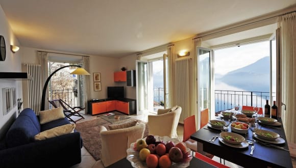 Ein luxuriöses Apartment mit zwei Schlafzimmern in einem neu gebauten Komplex direkt am Comer See. Das Appartment ist zeitgenössisch ausgestattet und bietet alle modernen Einrichtungen – ideal für einen entspannten Familienurlaub. Vom Balkon aus überblicken Sie das Freibad, das zum Komplex gehört. Sie haben einen guten Ausblick auf die Landschaft und auf den Comer See. Das große Schwimmbad liegt direkt neben dem See und Sie können wählen, ob Sie lieber im Pool oder im See schwimmen möchten. Das Apartment bietet zwei Schlafzimmer und hat Platz für bis zu sechs Urlauber. Küche, Wohn-und Essbereich bestehen aus einem offenen Bereich. Die Küche ist voll ausgestattet und Sie können hier Ihre italienischen Kochkünste anwenden. Der Wohnbereich ist gemütlich eingerichtet und bietet einen Breitwandbildschirm mit Satelliten-TV und einen DVD-Spieler für Ihre Unterhaltung. Zu dem Apartment gehört ein Stellplatz für Ihr Auto. In dem malerischen Dörfchen Musso finden Sie einen Bäcker, einen Supermarkt und verschiedene Cafes und Restaurants bieten Ihnen einen Einblick in den entspannten, italienischen Lebensstil. Falls Sie sich sportlich betätigen möchten, dann finden Sie Wanderwege, Wassersport, Golf und Skifahr-Möglichkeiten in der Nähe. Ob Sie mit einem Buch auf dem sonnigen Balkon entspannen, die frische Luft am See einatmen, einen Bergspaziergang wagen oder die Alpen erklimmen möchten, oder windsurfen, fischen oder Boot fahren wollen – dann ist das Apartment. Diese wohnung Ihr idealer Ausgangspunkt. Das Skigebiet Madesimo in Italien und das Promi-Skigebiet St. Moritz in der Schweiz sind jeweils nur knapp über eine Fahrstunde vom Apartment entfernt. In Musso gibt es einen kleinen Fähranleger, etwas weiter entfernt – in Dongo – ist ein größerer Fährhafen.