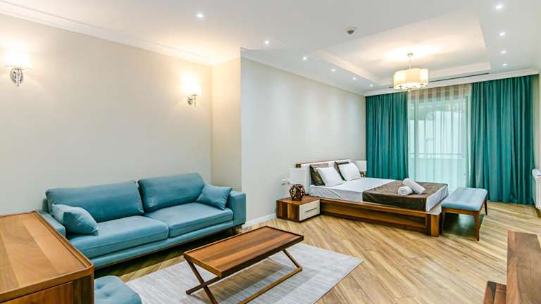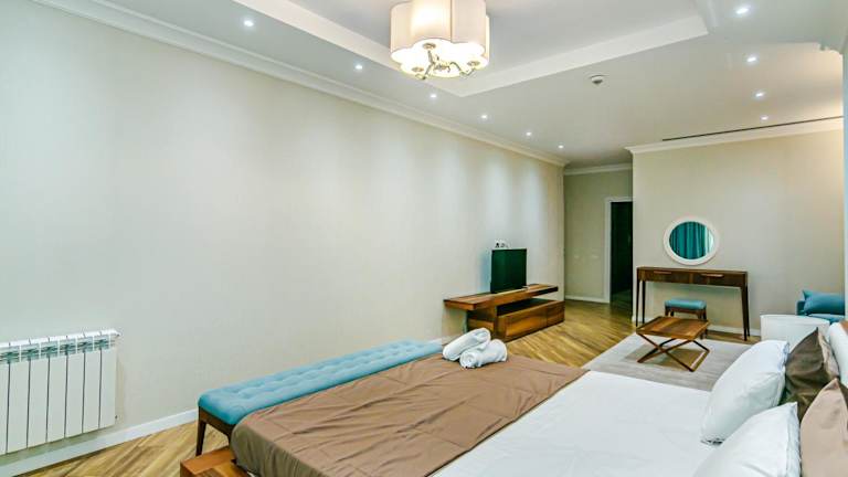 Isr Residance 5 star for Family aparment bietet Übernachtungsmöglichkeiten in einer klimatisierten Ferienwohnung mit einem Garten, einer Terrasse, einem eigenen Strandbereich und einem Restaurant. Die Unterkunft verfügt über eine rund um die Uhr besetzte Rezeption, an der mehrsprachige Mitarbeitende (Aserbaidschanisch, Englisch, Russisch, Türkisch) bei Fragen und Anliegen der Gäste behilflich sind.