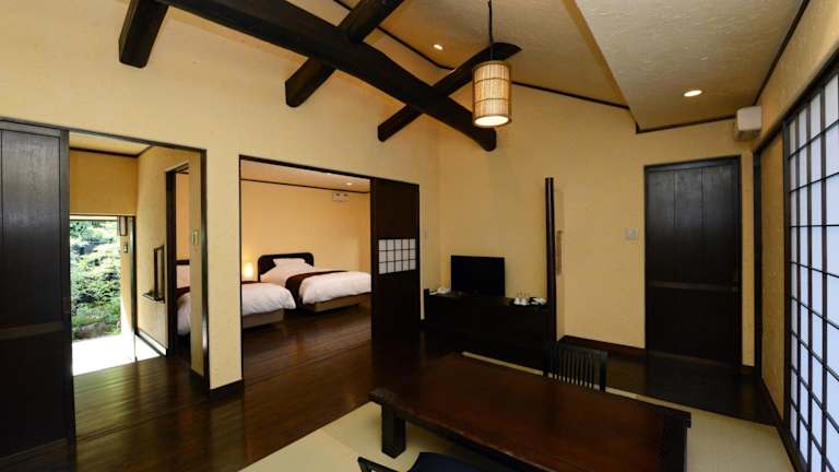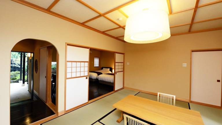 Die 5 klimatisierten Zimmer des Ito Yukitei Kawana Bettei sind stilvoll eingerichtet und bieten den Gästen ein luxuriöses und komfortables Ambiente. Jedes Zimmer verfügt über einen eigenen Whirlpool, der für Entspannung und Erholung sorgt. Die Zimmer sind mit einem Flachbildfernseher und kostenfreiem WLAN ausgestattet.