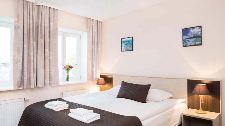 Die Zimmer im Hotel Ivolita Vilnius sind in warmen Farben gestaltet und bieten eine gemütliche Atmosphäre. Sie verfügen über ein eigenes Badezimmer mit Badewanne oder Dusche sowie einen Haartrockner. Zur Ausstattung gehören auch kostenfreies WLAN, Sat-TV und ein Safe an der Rezeption.