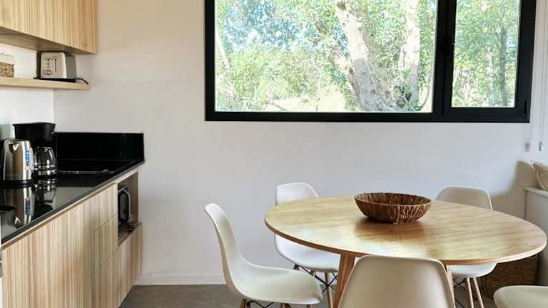 Das Ferienhaus verfügt über 1 Schlafzimmer, ein Wohnzimmer, eine voll ausgestattete Küche mit Kühlschrank und Kaffeemaschine sowie ein Badezimmer mit Dusche. Handtücher und Bettwäsche werden bereitgestellt. Die Unterkunft ist klimatisiert und bietet Gartenmöbel sowie eine Picknickbereich im Außenbereich.
