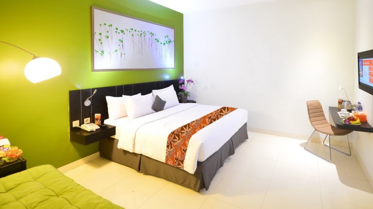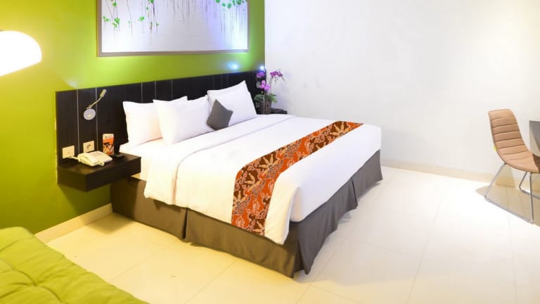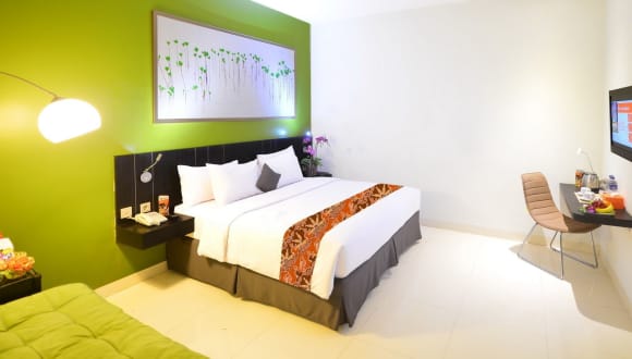 Die Zimmer im J Hotel - Bandara Soekarno Hatta sind geräumig und verfügen über farbenfrohe Wände, die eine fröhliche Atmosphäre schaffen. Zur Ausstattung gehören ein Flachbild-Kabel-TV, ein Wasserkocher und ein Safe. In einigen Zimmern stehen Ihnen zudem ein Kühlschrank, eine Minibar und ein Sofa zur Verfügung. Die klimatisierten Zimmer bieten Ihnen somit alle Annehmlichkeiten, die Sie für einen angenehmen Aufenthalt benötigen. Das private Badezimmer ist mit einer Dusche, einem Haartrockner, Handtüchern und kostenlosen Pflegeprodukten ausgestattet.