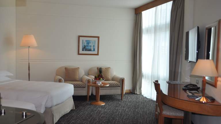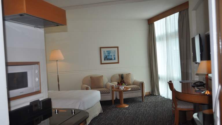 Jedes Zimmer besitzt ein Badezimmer. Das private Badezimmer ist mit einem Bademantel einem Haartrockner, Toilettenartikeln und Hausschuhen ausgestattet. Eine einladende Sofaecke gehört auch dazu. Das Zimmerinventar umfasst eine Minibar, einen Safe sowie einen Schreibtisch. Das Zimmerinventar umfasst eine Waschmaschine, ein Bügeleisen, einen Kühlschrank, eine Mikrowelle sowie eine Kaffeemaschine. Selbstverständlich gehören ein Telefon, ein Radio sowie ein Fernseher zum Inventar. Eine Flasche Wasser ist inklusive.
