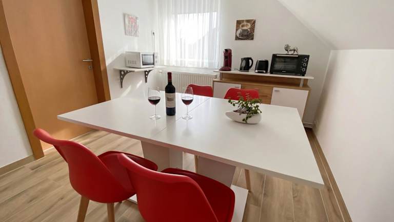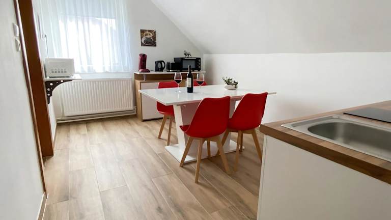 In den Jacky & Daniel's Apartments Top 2 können die Gäste ihre eigenen Mahlzeiten zubereiten, da jede Unterkunft über eine voll ausgestattete Küche verfügt. Alternativ können sie auch die nahe gelegenen Restaurants und Cafés besuchen, um lokale Spezialitäten zu probieren.