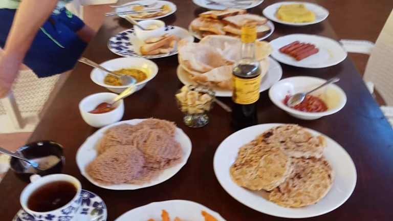 In der Unterkunft JAGA HOME können Gäste ein asiatisches Frühstück genießen.