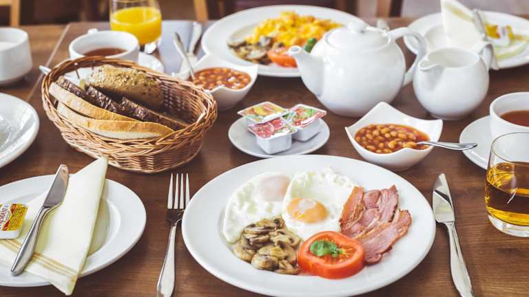 Jeden Morgen wird ein köstliches englisches oder irisches Frühstück im Bed & Breakfast serviert. Genießen Sie die Mahlzeit auf der Terrasse und starten Sie gestärkt in den Tag.