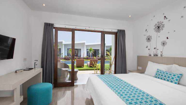 Die Zimmer der Unterkunft sind mit einem Balkon ausgestattet, der einen Blick auf den Garten bietet. Zur Einrichtung gehören eine Klimaanlage, ein Schreibtisch, ein Flachbild-TV, ein eigenes Badezimmer, Bettwäsche, Handtücher und eine Terrasse mit Blick auf den Pool. Zusätzlich verfügen alle Wohneinheiten über einen Kühlschrank und kostenfreies WLAN.