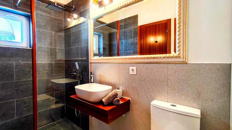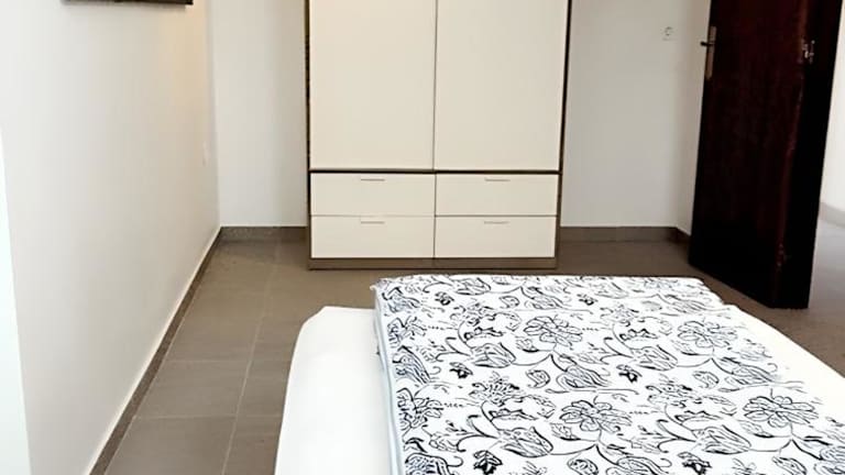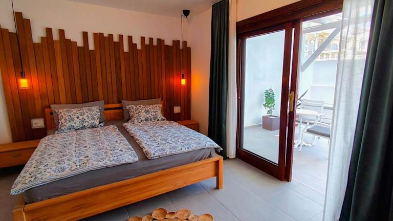 Das Ferienhaus bietet zwei Schlafzimmer sowie ein Wohnzimmer. Zur Ausstattung gehören ein Flachbild-TV, eine gut ausgestattete Küche mit Geschirrspüler und Ofen sowie zwei Badezimmer mit Dusche. Die Gäste können den Balkon sowie die Terrasse nutzen. Handtücher und Bettwäsche werden bereitgestellt.