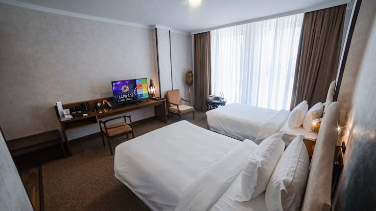 Das Jannat Resort Osh bietet eine umfassende Ausstattung mit einem Garten, einer Gemeinschaftslounge und einer Terrasse. Das Restaurant sorgt für kulinarische Erlebnisse. Zu den weiteren Annehmlichkeiten zählen ein Zimmerservice und ein Tourenschalter, die den Aufenthalt der Gäste erleichtern. Kostenloses WLAN ist in der gesamten Unterkunft verfügbar.