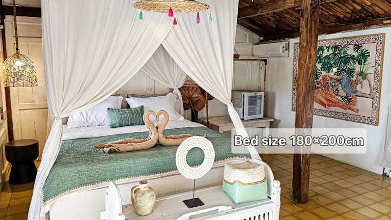Die Zimmer im Janur Bungalow sind komfortabel und bieten verschiedene Annehmlichkeiten für einen angenehmen Aufenthalt. Einige Zimmer verfügen über einen gemütlichen Sitzbereich, der zum Entspannen nach einem ereignisreichen Tag einlädt. Einige Zimmer haben auch eine Terrasse oder einen Balkon, von denen aus Sie die umliegende Natur und die Reisfelder bewundern können. Jedes Zimmer verfügt über ein eigenes Badezimmer, so dass Sie sich in Ihrem eigenen privaten Raum erfrischen können.