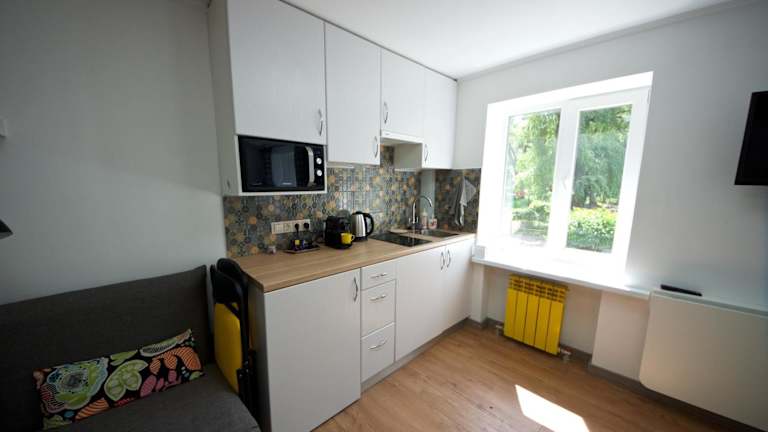 Das Яскраві Апартаменти ist eine Selbstversorger-Unterkunft und bietet keine Verpflegung an. Es gibt jedoch viele Restaurants und Cafés in der Umgebung, in denen Sie lokale und internationale Küche genießen können.