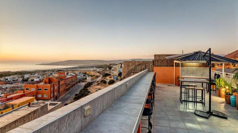 Die Unterkunft befindet sich in Taghazout, etwa 1,1 km vom Strand Taghazout und 1,1 km vom Strand Imourane entfernt. Zu den weiteren nahegelegenen Orten zählen der Banana Point Strand in 2,4 km und Golf Tazegzout in 3,1 km. Der Flughafen Al Massira ist 36 km entfernt und ein kostenpflichtiger Flughafentransfer wird angeboten.