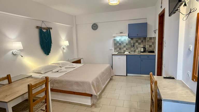 Im Hotel Jimmy's Place in Órmos Marathokámpou erwartet Sie ein angenehmer Aufenthalt mit Gartenblick, einem Restaurant und einer Terrasse. Nutzen Sie das kostenfreie WLAN und erreichen Sie den nächsten Strand in nur 90 Metern. Die Unterkünfte sind klimatisiert und verfügen über ein eigenes Bad sowie eine Küche mit Kühlschrank und Kochfeld. Entspannen Sie im Sitz- und Essbereich oder erkunden Sie die Umgebung beim Wandern und Schnorcheln. Samos und Kokkari sind nur eine kurze Autofahrt entfernt. Der internationale Flughafen Samos liegt ebenfalls in der Nähe.