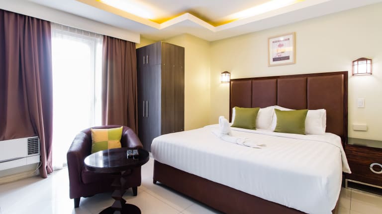 Das JMM Grand Suites befindet sich in zentraler Lage in Manila, gegenüber dem beliebten Einkaufszentrum Robinsons Place Mall. Die Bucht von Manila ist nur 5 Gehminuten entfernt. Das Hotel liegt in der Pedro Gil Straße und bietet eine gute Anbindung an öffentliche Verkehrsmittel. In der Nähe finden Sie auch verschiedene Restaurants, Bars und Unterhaltungsmöglichkeiten. Der internationale Flughafen Manila ist etwa 30 Fahrminuten vom Hotel entfernt.