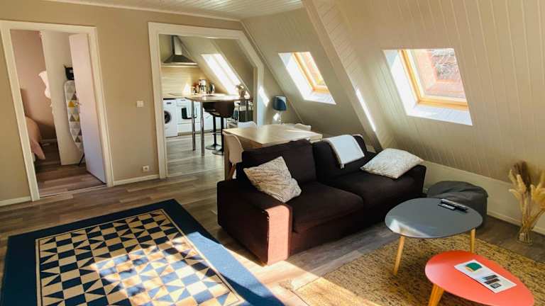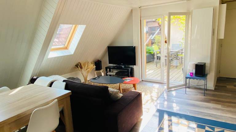 Die Unterkunft Joli 2 pièces, avec climatisation et grande terrasse, vue sur les toits, zone piétonne bietet Übernachtungsmöglichkeiten in Hagenau und ist eine privat geführte Ferienwohnung mit einem Balkon und einer Terrasse mit Stadtblick. Die Unterkunft ist für Nichtraucher konzipiert und entsprechend gestaltet.
