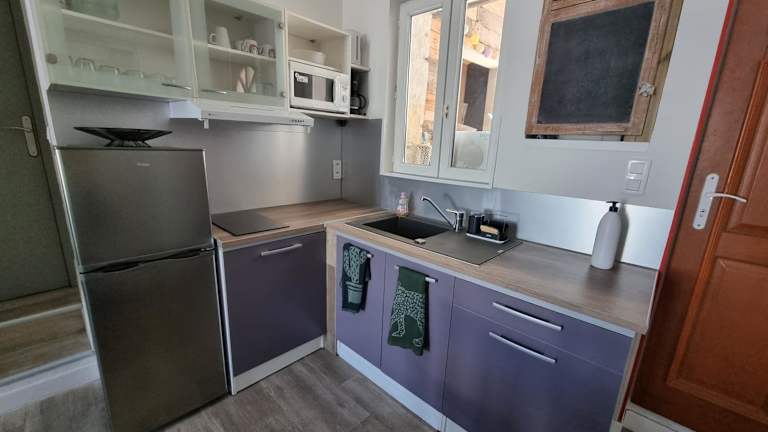 Das Joli appart bietet ein komfortables und gut ausgestattetes Apartment für Ihren Aufenthalt. Das Apartment verfügt über 2 Schlafzimmer, eine voll ausgestattete Küche mit Kühlschrank und Mikrowelle, einen Flachbild-TV und einen gemütlichen Sitzbereich. Das Badezimmer ist mit einer Dusche ausgestattet und Handtücher und Bettwäsche werden gestellt. Von Ihrem eigenen Balkon aus können Sie den Blick auf die Stadt genießen.