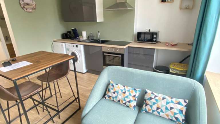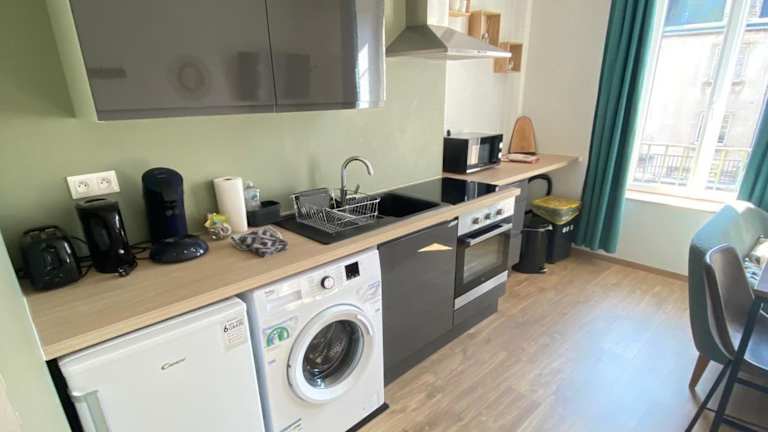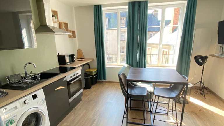 Das Joli appartement F2 plein centre Coutances bietet Übernachtungsmöglichkeiten in einer modernen Ferienwohnung. Es handelt sich um ein Nichtraucherapartment, in dem sowohl öffentliche als auch private Bereiche rauchfrei sind. Die Unterkunft verfügt über kostenfreies WLAN und einen Flachbild-TV, um den Gästen eine bequeme und zeitgemäße Erfahrung zu bieten.