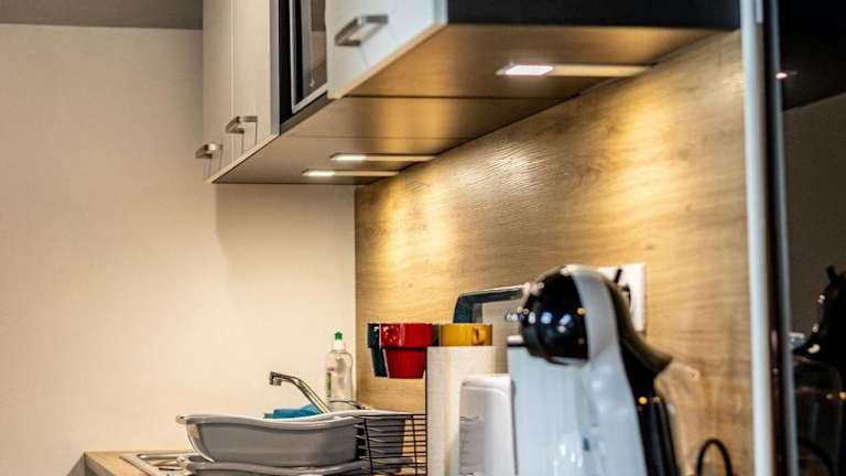 Da es sich um ein Apartment handelt, können Sie Ihre eigenen Mahlzeiten in der gut ausgestatteten Küche zubereiten. Es gibt jedoch auch Restaurants in der Nähe, in denen Sie lokale Spezialitäten genießen können.