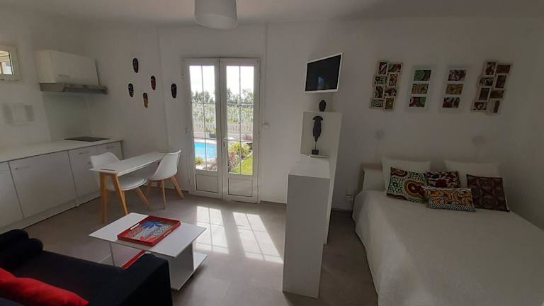 Joli studio rez de jardin, piscine, jacuzzi ist eine moderne Ferienwohnung, die eine ruhige Atmosphäre mit Annehmlichkeiten wie einem Außenpool, einem Garten und einer Terrasse bietet. Die Unterkunft ist ideal für einen entspannten Aufenthalt in idyllischer Umgebung.