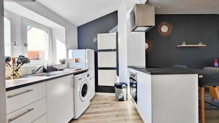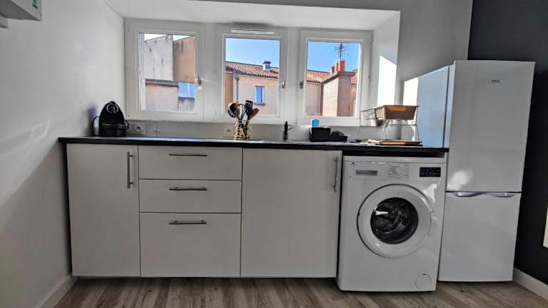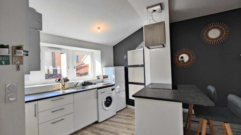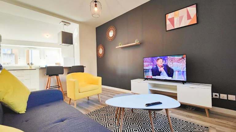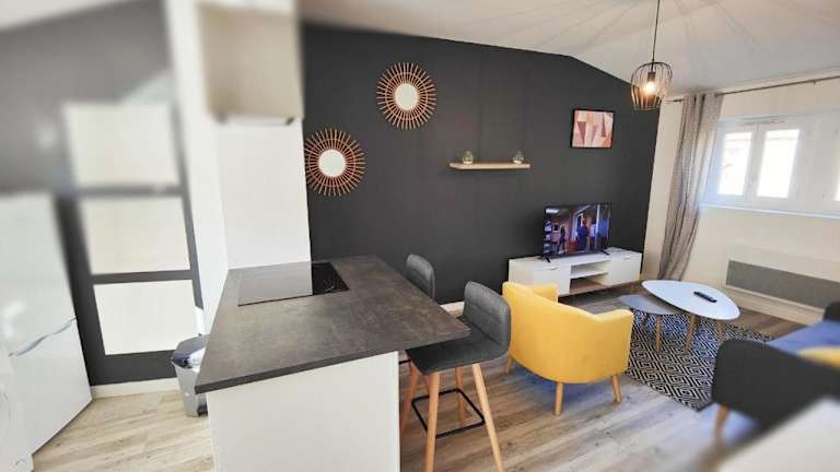 Joli T2 Scandi bietet Übernachtungsmöglichkeiten in einer gut ausgestatteten Ferienwohnung. Die Unterkunft besteht aus einem Schlafzimmer, einem Wohnzimmer und einem Badezimmer. Es werden viele Annehmlichkeiten bereitgestellt, darunter kostenloses WLAN und ein TV. Zudem sind Handtücher und Bettwäsche verfügbar, und die Unterkunft wird zwischen den Aufenthalten desinfiziert. Die Unterkunft hat strenge Regeln für Feiern und keine Haustiere sind erlaubt.