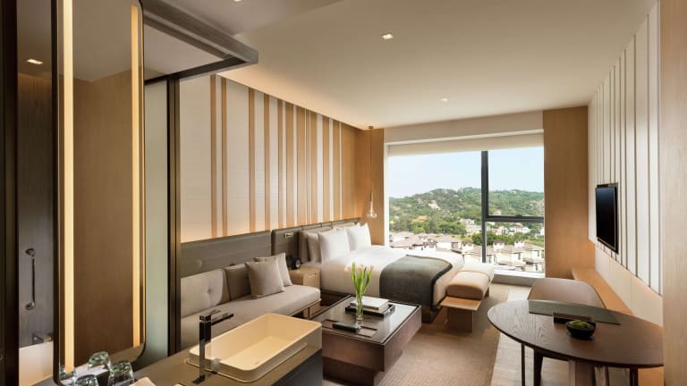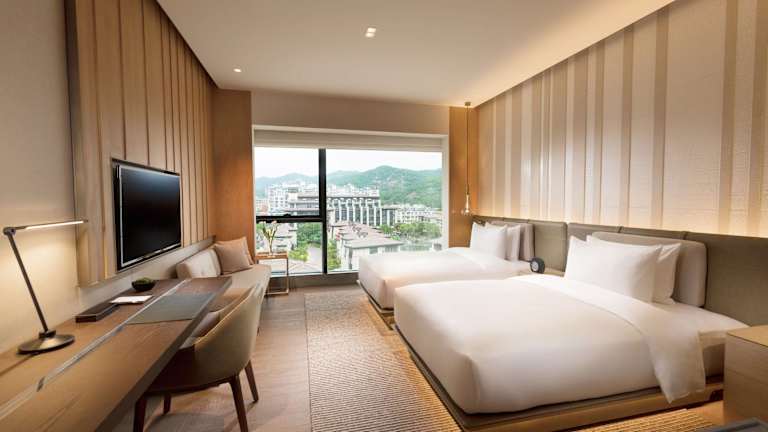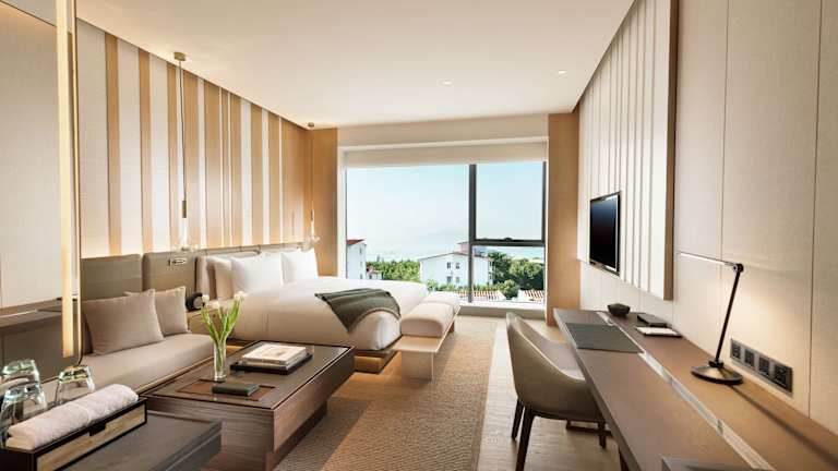 Das Joyze Hotel Xiamen bietet 215 elegante Zimmer und Suiten im traditionellen Fujian-Stil. Jede Unterkunft ist mit gemütlichen und hochwertigen Betten ausgestattet und verfügt über Annehmlichkeiten wie einen 49-Zoll-HD-TV, Bluetooth-Lautsprecher und eine Kapsel-Kaffeemaschine. Das geräumige Badezimmer bietet ein luxuriöses Spa-Erlebnis, und das automatische WC sorgt für zusätzlichen Komfort. Durch die großen raumhohen Fenster können Sie den atemberaubenden Blick auf den Berg Dongping, die Stadt und die Küste genießen.