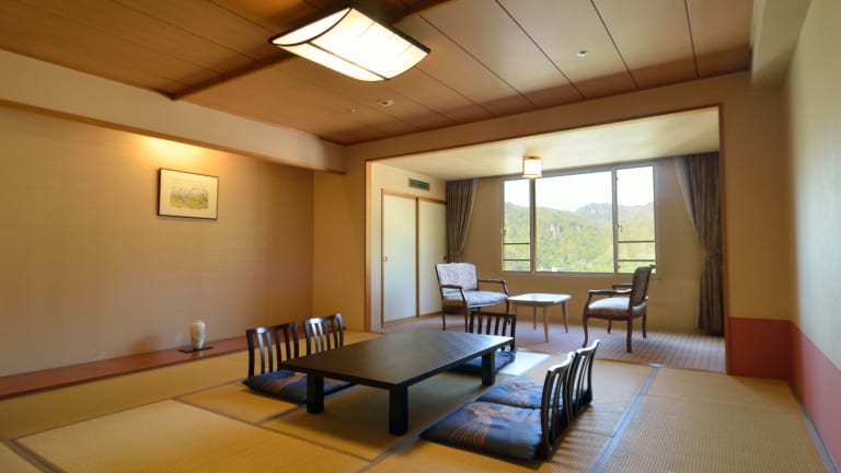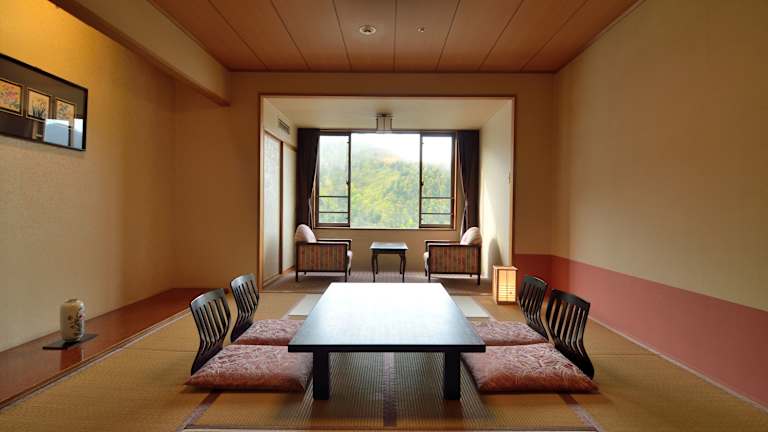 Das Hotel bietet eine Auswahl an Zimmern im japanischen Stil mit Tatamiböden und Futonbetten sowie Zimmer im westlichen Stil. Alle Zimmer sind klimatisiert und verfügen über ein eigenes Bad mit einer Badewanne.