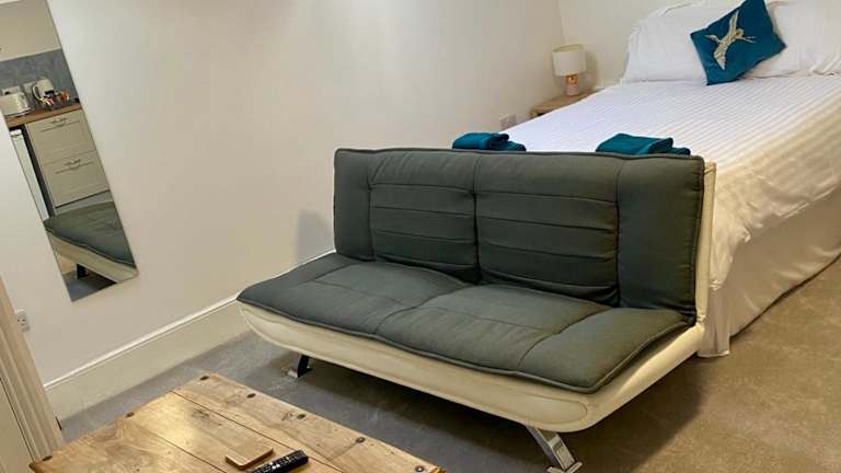 Die Ferienwohnung verfügt über ein Schlafzimmer, eine Küche, die mit einem Kühlschrank und einem Ofen ausgestattet ist, sowie ein Badezimmer mit Dusche. Zur weiteren Ausstattung gehören ein Flachbild-TV und ein Sitzbereich. Handtücher und Bettwäsche werden bereitgestellt.