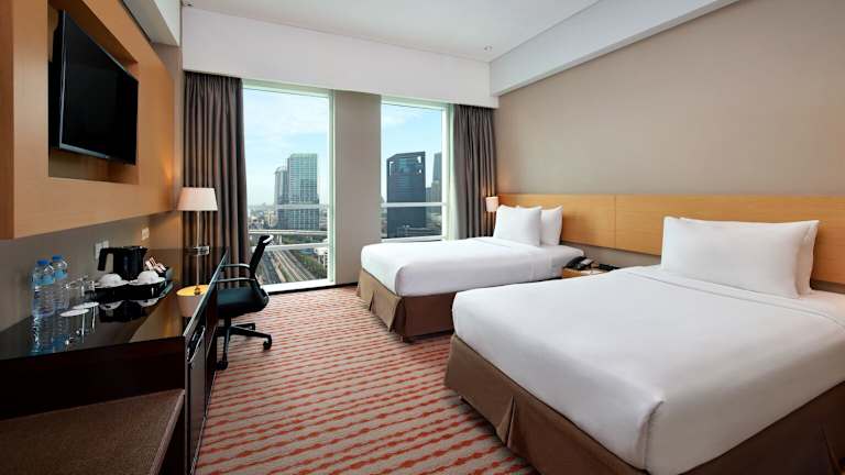 Das JS Luwansa Hotel & Convention Center bietet luxuriöse Unterkünfte im Zentrum von Jakarta. Es befindet sich nur 5 Gehminuten vom Geschäfts- und Unterhaltungsviertel Rasuna Epicentrum entfernt. Das Hotel verfügt über einen Außenpool, ein Fitnessstudio und 2 Restaurants. Die modernen Zimmer im JS Luwansa Hotel & Convention Center sind mit Teppichboden und großen Fenstern ausgestattet, die viel Tageslicht hereinlassen. Zur Ausstattung gehören ein Flachbild-Sat-TV, ein Wasserkocher und ein Kühlschrank. Ein Arbeitsbereich und ein Safe sind ebenfalls vorhanden. An der 24-Stunden-Rezeption finden Sie Gepäckaufbewahrungsmöglichkeiten und Zeitungen. Entspannen Sie bei einer Massage im Spa oder nutzen Sie die Autovermietung, den Fax-/Kopierservice und die Tagungs- und Banketteinrichtungen vor Ort. Transfers vom und zum internationalen Flughafen Soekarno-Hatta, der sich 45 Autominuten entfernt befindet, können arrangiert werden. Das National Monument erreichen Sie nach 30 Fahrminuten und das Haupttor von Gelora Bung Karno nach 8 km. Im Olam Restaurant werden internationale Spezialitäten und lokale Köstlichkeiten serviert, während die Chill Bar eine feine Auswahl an Weinen bietet. Zimmer-Service ist ebenfalls möglich.